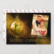 Une carte de Noël chrétienne moderne avec votre photo de famille et des noms au-dessus d'un brillant or Joyeux Noël. Spectaculaire.