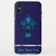 Superbe croix médiévale dans les tons bleu et argent garniture métallique avec nom personnalisé, sur arrière - plan bleu denim. La couleur de police, le style de police et la taille de police sont personnalisables.