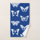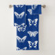 L'ensemble de serviette dans des croquis numériques des papillons assortis s'est adapté des illustrations vintages, et a numériquement coloré - le blanc sur un arrière - plan profond de bleu de cobalt