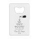 Ce design minimaliste d'ouvre-bouteille présente un croquis dessiné à la main d'une tour de champagne versée à partir d'une bouteille, symbolisant la célébration, la joie et les nouveaux débuts. Personnalisé avec les noms d'un couple et la date en élégante écriture manuscrite, c'est le cadeau idéal pour les mariages, les fiançailles ou les soirées d'anniversaire de mariage. L'illustration élégante en noir et blanc ajoute une touche moderne mais intemporelle à votre souvenir d'événement spécial.