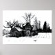 Croquis d'encre Ancienne ferme affiche de scène hi
