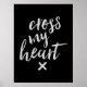 Affiche inspirante affichant l'expression "Cross My Heart" dans un script de brosse blanche avec une texture d'encre organique pour obtenir un look authentique, lettré à la main. Conçu pour être parfait sur toutes les tailles d'affiche orientées portrait. Vérifiez si l'image doit être repositionnée ou redimensionnée après avoir modifié la taille de l'affiche.