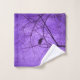 Ce linge a la silhouette d'un seul corbeau noir assis dans les branches d'un arbre noir stérile contre un ciel violet profond.