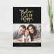 Partagez la magie de Noël en envoyant à vos proches une carte de voeux photo moderne. Cette élégante carte de voeux de vacances présente un faux texte en feuille d'or qui dit "Croyez en la magie", un arrière - plan noir avec des points gris et un espace réservé pour votre photo et votre texte personnalisés.