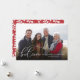 Cette carte de vacances photo contient l'expression "croire en l'esprit de Noël" dans un élégant script blanc moderne au premier plan et votre photo dans l'arrière - plan. Le dos est orné de motifs floraux d'hiver rouge et blanc.