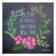 Poster Motivational Mindfulness avec Chalkboard arrière - plan et Floral Wreath design et des mots (que vous pouvez changer) disant "croyez en vous et d'autres vous le feront aussi" Pour plus d'expressions de pleine conscience, des affiches et d'autres cadeaux visitez www.zazzle.com/mindfulnessgifts* Ou www.leahg.me. — Facebook Mindfulness Group : https://www.facebook.com/groups/LiveMindfully
