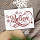 Croyez la carte de Noël en rouge profond avec des flocons de neige et des étoiles. Personnalisez le dos avec vos propres mots. Pour plus de cartes voir notre collection de cartes de Noël.