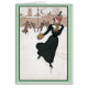D'une carte postale 1900 du cru C., un patinage de glace de femme dans l'époque typique de belle, tour de l'habillement d'hiver de siècle.