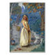Illustration vintage par le regard fixe de Harold (1885-1962) dépeignant une belle jeune femme blonde dans une robe jaune se tenant sur un chemin de jardin près d'un courant. Un ange planant au-dessus de son épaule chuchote dans son oreille, et les visages des fées peuvent être jeter un coup d'oeil vu de leurs cachettes. Le regard fixe de Harold était un illustrateur et un auteur nés en Nouvelle Zélande, qui a étudié l'art à Londres, et également habités pendant un certain temps en Australie et à Pasadena, la Californie. Il s'est appelé "l'homme de bulle" parce qu'il a fréquemment inclus des bulles dans les illustrations pour les livres d'enfants. La carte est intérieur vide pour votre propre message.
