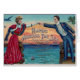 Cette illustration vintage colorée est probable de la musique de feuille pour une marche militaire intitulée des "mains à travers la mer" composée par John Philip Sousa en 1899. Les couples se tiennent sur les docks de opposition avec la mer entre eux, et atteignent à travers pour tenir des mains. Il y a des oiseaux bleus au-dessus de sa tête et d'un shamrock au-dessus du sien, avec des voiliers dans l'eau et un coucher du soleil sur l'horizon. Ce serait une carte gentille à envoyer à quelqu'un qui est conjoint sert à l'étranger dans les militaires. La carte est intérieur vide pour votre message manuscrit.