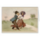 Une illustration vintage d'un couple canin s'est habillée pour une nuit de date et danser tout droit sur leurs jambes de derrière en parc. Elle est un teckel et il est un bouledogue. Ses pleines jupes tournoient pendant qu'il montre ses qualifications menant sa dame par les étapes de la danse. Cette carte est intérieur vide pour votre propre message.