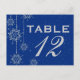 Flammes de neige en cristal numéro de carte postale mariage bleu qui comprend des flocons de neige en cristal suspendu et de la neige sur un arrière - plan bleu royal moyen. Un design moderne et contemporain pour votre mariage d'hiver de décembre ou de Noël. Ce design rétro modèle fait partie d'un ensemble mariage, est entièrement personnalisable et peut être personnalisé. Notez qu'il n'y a pas de vrais cristaux, bijoux ou strass, mais il s'agit d'images imprimées à plat.