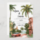 Invitation du paysage cubain avec aquarelle voiture cuban, bâtiment et arbres.