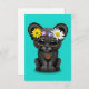 Ce design adorable est orné d'un petit enfant à fleur de lard à panthère noire. Le petit chat porte un bandeau en cuir avec une fleur ainsi qu'un collier symbole de paix et un bracelet coloré. La tête surdimensionnée et le petit corps ainsi que les détails de la fourrure et des fleurs créent une belle combinaison d'un dessin animé et d'un look réaliste. Cet enfant des années 60 inspiré panthère noire est parfait pour tous les amateurs d'animaux et de hippies