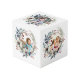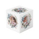 Couronne de Noël avec baies et fleurs photo cube. Ce cube photo est orné d'un joli cadre de couronne de Noël, agrémenté de branches, de fleurs blanches, de baies rouges et de feuilles verts. Le cube lui-même est conçu pour présenter cinq photos distinctes sur ses côtés dans le cadre de la couronne, vous permettant d'afficher des souvenirs ou des moments festifs chéris. Avec ses détails complexes et ses éléments festifs, ce cube photo s'ajoute parfaitement à votre décor de vacances.