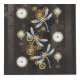 Cadres et clés d'antiquité avec des engrenages d'or et de laiton, décorés de libellules mécaniques, steampunk sur arrière - plan brun rayé.