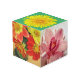 Cinq fleurs, de l'élégante orchidée à l'humble pissenlit, sur un cube en bois. Apportez le jardin à l'intérieur toute l'année. Idéal pour votre salon, votre salon ou même la chambre d'un enfant.