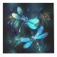 Deux libellules transparentes, lumineuses, turquoise, artistiquement dessinées sur l'arrière - plan de nuit avec des algues luminescentes et des lucioles. libellule éclatante.