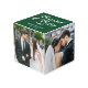 Commémorez le premier Noël des jeunes mariés en couple avec ce Cube photo verte de Noël Marié et Joyeux mariés. Ce cube photo comporte 4 photos mariages avec les noms du couple et la date du mariage en blanc sur un arrière - plan vert et les mots "Marié & Joyeux" dans une belle police de caractères avec les coeurs.