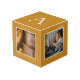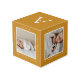 Petit et moderne simple photo bébé & naissance Statistiques garde saké photo cube. Le design est simple et minimaliste, avec une photo carré de chaque côté du cube pour afficher vos photos spéciales pour bébé. Le nom, la date, l'heure et les statistiques de naissance du bébé sont affichés dans un design simple et moderne autour du cube photo. Ajoutez le monogramme de votre bébé en haut du cube photo.