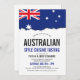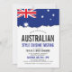 Un drapeau australien sur le thème d'une carte blanche d'invitation propre pour votre prochain événement à thème australien. Un excellent produit à utiliser pour un événement gastronomique ou un barbecue spécial de sélection de plats.