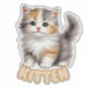Cet autocollant géant pour bébé est un ajout charmant et réconfortant à n’importe quelle chambre pour bébé ou pour enfant, conçu pour apporter une touche de confort et de charme à l’espace. L'illustration présente un chaton bébé irrésistiblement mignon assis avec grâce, sa fourrure moelleuse qui se déverse autour de lui dans des vagues douces et luxueuses. La fourrure du chaton est un magnifique mélange de tons blancs, gris et dorés-oranges, lui donnant un aspect calico qui ajoute profondeur et réalisme au design. Les yeux brillants et larges du chaton sont pleins d’innocence et de curiosité, et attirent le spectateur avec leurs détails expressifs. Son petit nez rose et son sourire doux transmettent un sentiment de chaleur et d’amusement, ce qui en fait le compagnon idéal pour les aventures imaginatives d’un enfant. Le doux rougissement de ses joues renforce sa personnalité attachante. La queue boisée se courbe élégamment derrière le chaton, mettant l'accent sur son comportement jeune et animé. Les détails de la fourrure sont complexes et réalistes, donnant à l'autocollant une qualité tridimensionnelle qui fait paraître le chaton presque touchable. Le mot "KITTEN" est affiché en bas avec audace dans une police amusante, de style bulle. Les lettres sont gris clair avec un contour rose doux, complétant parfaitement la palette de couleurs douces du chaton. La bordure blanche et propre qui entoure l’autocollant permet de se distinguer magnifiquement sur n’importe quelle surface, qu’il s’agisse d’un mur, d’un meuble ou d’autres éléments de décoration. Cet autocollant est idéal pour créer une crèche douillette à thème animal, favoriser l’amour pour les animaux de compagnie ou ajouter une touche de fantaisie et de douceur à l’espace d’un enfant. Associez-le à d'autres autocollants pour créer une collection de compagnons de bébé animal.