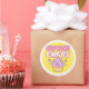 A sweet round sticker featuring a pastel cupcake with swirled frosting, candy stars, and sprinkles. Bold bubble text reads “Cupcake Chaos.” Perfect for laptops, water bottles, and notebooks — a playful reminder to embrace the mess with flavor.