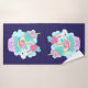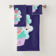 Serviette avec une jolie illustration représentant un cupcake et une crème glacée souriant avec joie. Un arc-en-ciel et des coeurs entourent le dessin. Un joli nuage moelleux sourit aussi de bonheur. Le cupcake et la crème glacée sont surmontés d'une corne de licorne branchée. Design mignon et adorable, plein de joie.