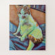 This custom art cat puzzle created by taking a photograph of my cat opus. Le photographe qui converted into a black and white print and the color restored and style recreated with the use of colored pencils as my main medium.