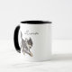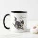 A charming hand-drawn illustration of a long-haired black and tan Chihuahua on a sleek white mug with a black rim and handle. The perfect personalized gift for any Chihuahua lover, allowing you to add their favorite pet's name to the top right. This custom Chihuahua mug is an ideal choice for a thoughtful dog mom gift or a unique addition to your own collection. Featuring a simple, elegant art style, it brings daily joy to any dog owner. Make their morning coffee extra special with this one-of-a-kind, customizable keepsake.