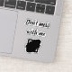A striking, die-cut sticker featuring the phrase "Don't mess with me." The elegant font and black brushstroke create a bold look that's perfect for laptops, phones, notebooks, and anything else you want to add a touch of power. Durable and water-resistant, this sticker is also scratch-resistant.
