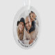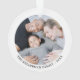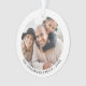 This ornament switches to a round layout with two round photos—one on each side—so you can highlight two favorite moments. The name curves along the bottom on both sides for a clean, personalized touch. The simple black background keeps the whole design modern and timeless. Easy to customize and a sweet gift for family, friends, or yourself, it adds a meaningful little moment to the tree.