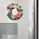 Brighten up your kitchen with this elegant round fridge magnet. Featuring a luxurious tropical hibiscus and gold leaf design, it can be personalized with your own initial. A perfect small gift for housewarmings, weddings, or a stylish treat for yourself. Available in multiple sizes to fit your home decor perfectly.