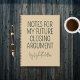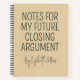 Get organized, stay inspired, and make your case in style with this personalized “Notes for My Future Closing Argument” notebook. Designed for law students, attorneys, and legal professionals, this witty notebook makes the perfect graduation, promotion, or back-to-school gift. Use it to jot down arguments, ideas, or daily thoughts with confidence. Add your name for a custom professional touch — because every great closing statement starts with great notes!