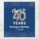Étiquettes personnalisés de bouteille de vin de 40e anniversaire avec un arrière - plan bleu élégant qui peut être changé à n'importe quelle couleur, parties scintillant brillante argent, quarante ballons d'hélium argent, et un modèle texte simple qui est facile à personnaliser.