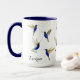 Custom mug for hummingbird lovers featuring hand-painted Velvet-purple Coronet Hummingbirds. Personalize with your name. The font style and font size can be changed by clicking on "Edit design."