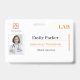 Featuring a bold orange header and minimal layout, this laboratory technician ID badge is perfect for hospitals, research labs, diagnostic centers, and clinical environments.