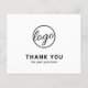 Custom budget business thank you card featuring a minimalist design with your logo on the front along with "Thank you for your purchase". The backside has your personal message. A basic and plain design that still comes across as professional. This simple thank you card is great for any type of business, big or small.