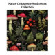 Whimsical mushroom illustrations with moss, ferns, and wildflowers