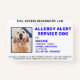 Allergy Alert Service Dog - Easily identify your dog as a working service dog, while keeping your dog focused and cut down on distractions while working with one of these k9 service dog id badges. Although not required, a Service Dog ID badge gives you and your service dog peace of mind and ease of travel without hassles and questions when seeking public access. COPYRIGHT © 2020 Judy Burrows, Black Dog Art - All Rights Reserved. Custom Photo Allergy Alert Service Dog ID Badge