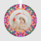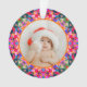 Custom Photo Merry Christmas Modern Colorful Tree Ornament. A festive, jolly and bright Christmas pattern decoration for your holiday home. Add your own two photos to celebrate family memories. For budget friendly maximalist Christmas home decor presents. In traditional, warm Christmas colors of red, pink and orange, with winter green and blue. Makes a great, budget friendly gift for her.
