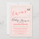 Custom She's With Twins Baby shower Invitation par Fox & Nod. Il présente un arrière - plan rose, subtil, en lin, avec des illustrations dessinées à la main d'un oiseau Mama et niche avec deux petits oeufs. C'est une excellente invitation pour les jumelles. Une invitation aussi moderne, fraîche, douce, avec une grande attention au détail, qui ne manquera pas de faire bonne impression. Le dos est doté d'un motif d'épine-épine rose et blanche complémentaire.