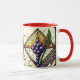 Start your day under the soft glow of the Customizable "Grapes and Wheat" Stained Glass Mug. This high-quality ceramic mug features an exquisite circular illustration of deep amethyst-purple grapes and vibrant emerald-green wheat stalks, all set within a classic diamond-shaped cathedral glass frame.