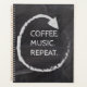 Introducing this humorous customizable planner inspired by music and featuring a chalkboard design with the words "Coffee, Music, Repeat"! Elevate your daily routine with this charming organizational accessory that pays homage to the love of music! If you choose, the three words can be changed to your choice of three words using the editing tool.