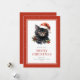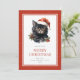 Aquarelle rouge Joyeuse carte de Noël avec une aquarelle illustrant un chat noir portant un casquette du Père Noël. Personnalisez facilement cette carte de vacances en couleur rouge avec votre nom de famille et votre texte.