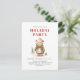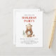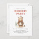 Cette carte postale confortable et rustique d'invitation à la fête de vacances présente une aquarelle illustrant un ours brun mignon vêtu de vêtements d'hiver. Les mots "Fête" apparaissent dans des lettres serif rouge rond qui se coordonnent avec l'art. Ajoutez l'heure de la fête, l'emplacement et d'autres détails ci-dessous, et votre adresse de retour au verso.
