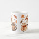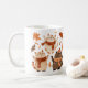 Enjoy the cozy vibes of fall with this adorable mug featuring playful autumn cats wearing scarves and surrounded by falling leaves 🍂.