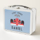 Cette lunchbox est super sucrée et un beau choix pour les petits amateurs de course automobile dans votre vie. Le texte qui s'affiche sur le devant et le dos peut être modifié pour vous permettre de conserver le "PREMIER GRADE" tel quel ou de le modifier, puis d'inclure le nom de votre petit ou tout autre choix de texte. Le design comporte une voiture de course rouge avec un drapeau à damiers et l'arrière - plan est un bleu doux.