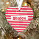Ce joli ornement de coeur d'animal de compagnie présente des rayures rouges et blanches. Peut être customisé avec le nom pour un cadeau spécial.