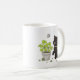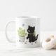 This charming mug features an adorable black kitten curiously gazing at a pot of lucky clovers, accented with soft green tones and a gentle butterfly detail. The calm, cozy illustration creates a peaceful vibe that’s perfect for enjoying coffee, tea, or hot chocolate.